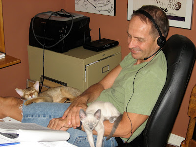 Misha, the Siamese, was given Baryshnikov’s nickname, seeing as how he loves to leap to the ceiling; more exactly, to the top of the kitchen cabinets by way of the counter. When he was a kitten we had to put wrapping all around the second floor railing after he performed a grand jete onto the stairs. If Soly is an in-your-face kind of editor, Misha is much more interested in punctuation and revision. He gets between me and the computer screen and tries to catch the cursor.